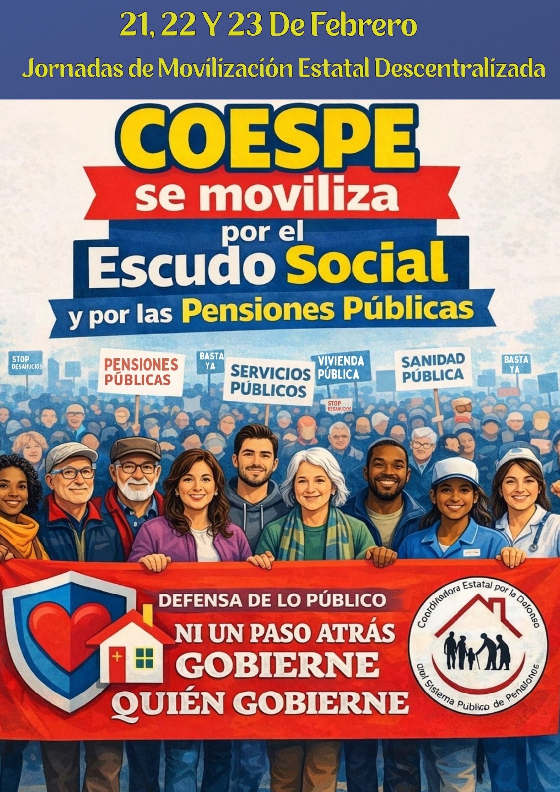 La Coordinadora Estatal por la Defensa del Sistema Público de Pensiones (COESPE) se ha constituido en la movilización por la defensa del sistema público de pensiones, contra los intereses del capital financiero, la patronal y los gobiernos que propongan leyes en contra de los intereses de la clase trabajadora y las capas populares. La situación del movimiento de pensionistas está determinada por la movilización en la calle a lo largo de todo el territorio en una gran cantidad de localidades repartidas por todo el territorio del Estado